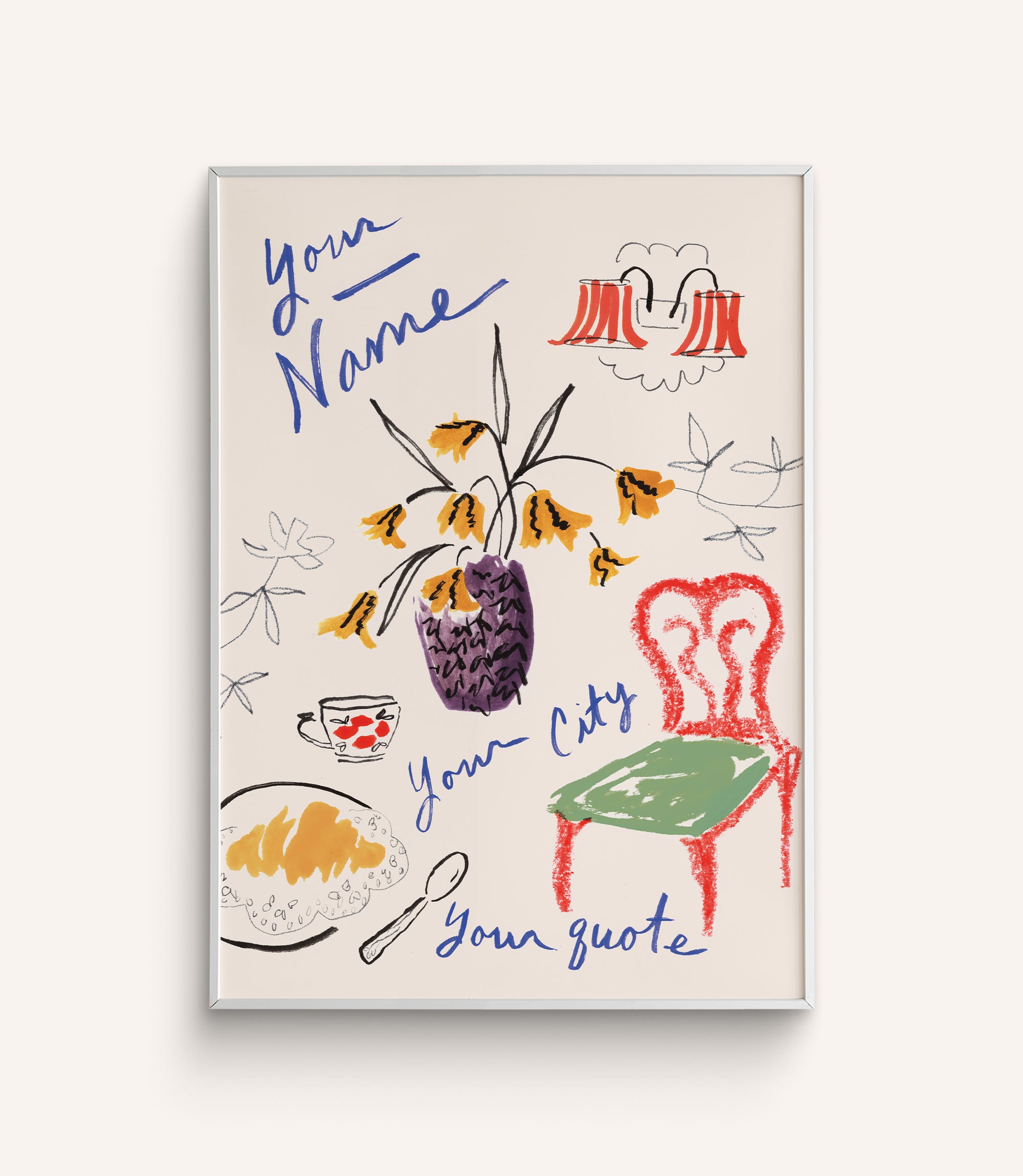 • Enter the information you'd like to appear on your print. You can customize elements like your name, city, or other text specified for each design.